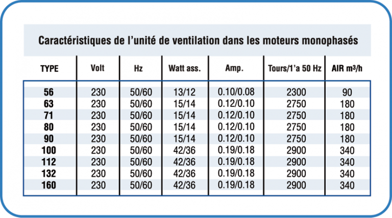 Caractéristiques Groupe de Ventilation Moteurs électriques