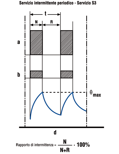 La norma CEI 2-3, fascicolo 8284, conformamente alla Normativa CENELEC EN 60034-1 ed a quella internazionale IEC 60034-1, distingue i servizi intermittenti in 10 tipologie di cui estendiamo di seguito i criteri di funzionamento: